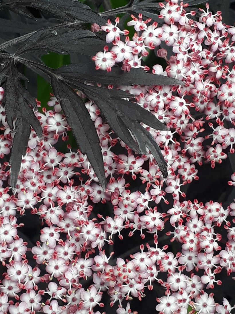 When my parents moved into their house 20 years ago I picked out a tiny plant to go in their garden. Today when I visited I was delighted to find it in full bloom. Pale and delicate blossoms against jet black leaves, more berry red buds just waiting to burst.