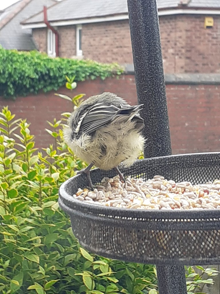 Our bird feeder has turned into a nursery. Birdmoms drop the kids off at the buffet for a while and fly off to do some chores.