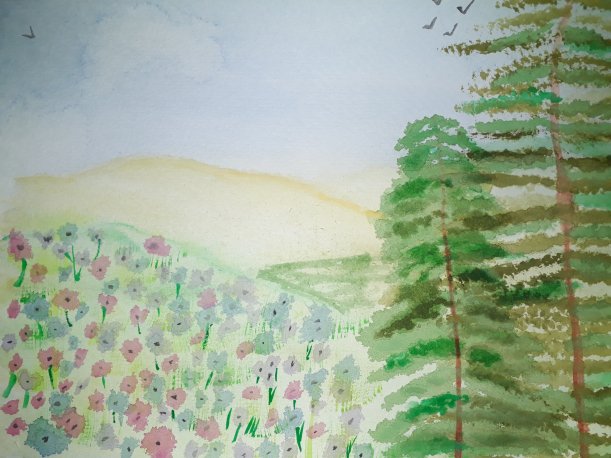 Sky is pleasing (proud of my little clouds) and my flowers aren’t bad.